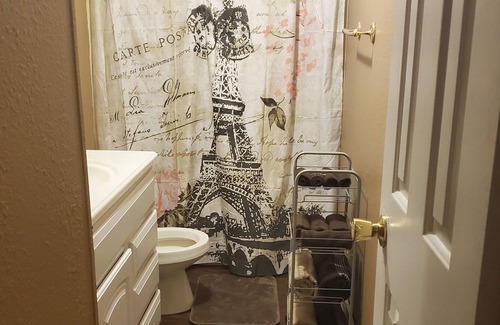 Spacious 3 bedroom, 2 bathroom with large master bedroom and ensuite with garden tub. Sleeps up to 8. Room for the entire family. Fully equipped kitchen. Private entrance, patio, washer, dryer and wireless internet. Walking distance to bar and grill. Short drive to shops and eateries including Walmart, Rue 21 and Cracker Barrel, Buffalo Wild Wings, Taco Bell and Arby's. Only a 10 minute drive to the main gate of Fort Leonard Wood.