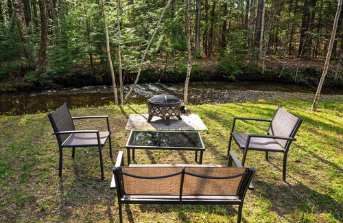 You can relax outdoors by the beautiful brook in the backyard, enjoying the soothing sounds of the water while taking in the peace and tranquility of the countryside. In the evenings, spend time by the fire pit, with firewood provided for your convenience. If you enjoy grilling, the weather is perfect for yard games like cornhole, which are also available for you to use.