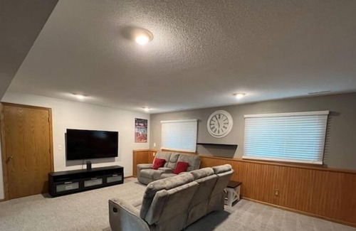 2 car garage, and entertainment basement. Work or unwind in inviting spaces, enjoy meals on the patio, and relax in comfy bedrooms. Prime location near attractions and amenities. Book now for an unforgettable stay.