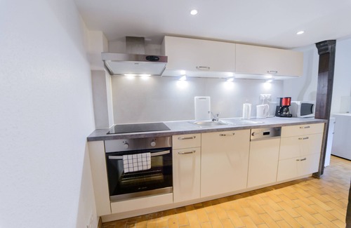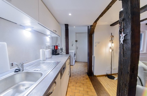A charming flat on two floors (living room with an open kitchen and the convertible sofa on the ground floor and upstairs bedroom). It is very cozy and quiet, in the historical center and the pedestrian zone of Strasbourg next to St. Thomas church.