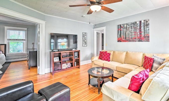 Cozy and Walkable Delmar Getaway with Fire Pit! is located in Delmar, just 5.3 miles from Capitol Building and 5.3 miles from Empire State Plaza Convention Center. The property is around 4.8 miles from Corning Tower, 5.1 miles from The Egg Center for the Performing Arts, and 5.1 miles from Albany City Hall. The property offers a 24-hour front desk and free Wifi is available throughout the property. The air-conditioned apartment is composed of 2 separate bedrooms, a fully equipped kitchen with a dishwasher and an oven, and 1 bathroom. Towels and bed linen are offered in the apartment. For added privacy, the accommodation features a private entrance. New York State Capitol is 5.4 miles from the apartment, while Times Union Center is 5.9 miles from the property. Albany International Airport is 12 miles away.