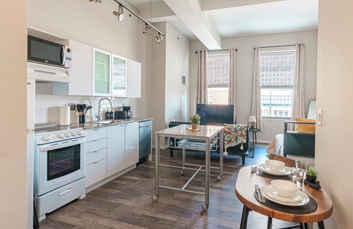 Perfect for 2 guests! Enjoy a cozy, well-designed space with chic décor, a fully stocked kitchen, bath & smart TV. Walk to top attractions, dining, and events. Ideal for couples or business travellers.