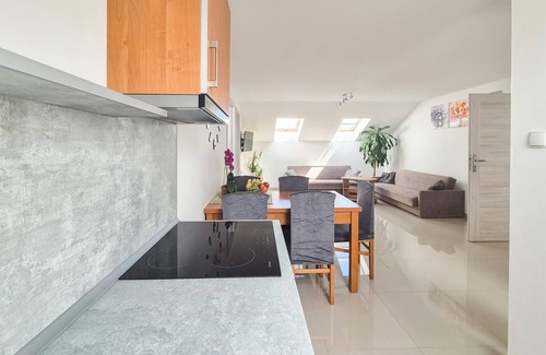 This bright and inviting holiday apartment is located in Bedzino, just a few kilometres from the Polish Baltic Sea coast. Enjoy a relaxing time here with your favourite person, your small family or even your dogs. The lovingly designed rooms offer you everything you need to sweeten your everyday holiday while cooking, eating, playing or relaxing.