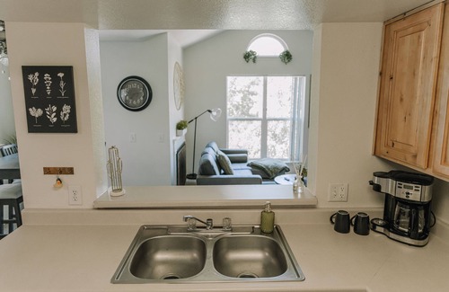 Kick back and relax in this calm, stylish space. This apartment is full of windows that make it a very sunny space, but on the corner of the building so there is still plenty of privacy! It is on the top floor and surrounded by big trees with views of the pond. Close to three major canyons making it minutes away from hiking, skiing, and the mountains. Come enjoy a quiet beauitful space!