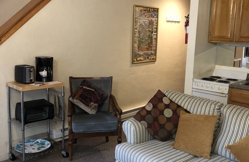 Cozy, smaller two bedroom, one bath (sleeps 5-6 with a pull out sofa in the living room that converts to a full size sleeper) townhouse condo located in Bartlett, NH. Room dimensions; master bedroom 12X12, 2d bed room 9X9, living room/kitchenette 11 1/2 X 14 (total s/f=602) .The condo is located in the Attitash Mountain Resort at the base of Attitash Mountain, nestled in the heart of the scenic White Mountains. Awesome views of the ski trails through oversized sliders leading to private balcony. Short walk to the slopes, base lodge and lifts. Fully applianced kitchenette with regular sized refrigerator, air conditioned, Cable, DVD, gas flame log stove for ambiance..lots of extras! WiFi wireless internet in the unit and also available in the lobby of the Hospitality Building and in the on-site restaurant, Matty B's Mountainside Cafe. There is an outdoor gazebo next to the building with a gas grill. (M & R lic 043466)