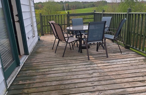 On snowmobile trail, ATV riding with Milk Plant Tavern restaurant bar right next door. Restaurant serves breakfast, lunch and dinner. Local store with gas up the road. Quiet full apartment with 2 livingrooms with ability to sleep 12. My son lives downstairs and I live across street to meet any of your needs. Very safe community!