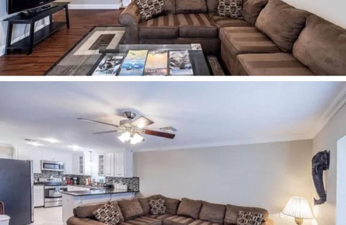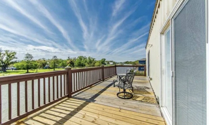 This 3 bedroom 2 bath property is over 1200 sq. ft and sleeps 5 adults comfortably (1 king bed, 2 queen beds and 1 single roll away bed). The living area is on the upper level where you will find a deck overlooking the bayou with access from the living room and master bedroom. The kitchen is fully stocked with cookware for all of your cooking needs. The underneath area is screened in and perfect for hanging out with friends.