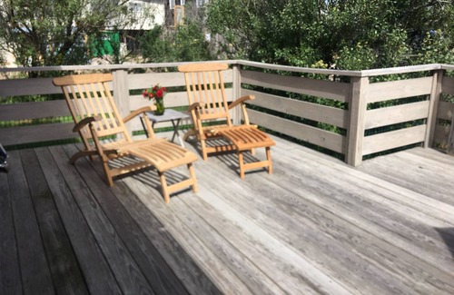 Go back in time and slow down at this cozy beach cottage. A contemporary cottage with the feel of being in the 1950's. Only 90 miles from NYC and accessible by train (Long Island Railroad) and bus (Hampton Jitney). You don't have to worry about getting sand in this house, it is the ultimate surf shack. Comfortably sleeps 8, with 2 queens and 2 twin bunk beds. Sit outside and have happy hour after a fun filled day at the beach.