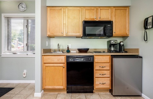 Fully equipped- microwave, mini-refrigerator, dishwasher, stovetop, coffee maker, and electric tea kettle