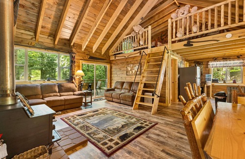 Please note that this cabin is appropriate for a maximum of 7 guests. Guests must be able to climb ladder in photos to get to the loft bedroom. There are no parties allowed at this property as this cabin is only for up to 7 guests on the reservation.