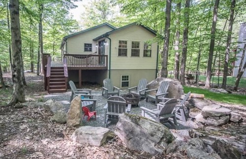 Welcome to Cozy Bear, a first class vacation rental experience and 3 minute walk from the indoor sports complex in one of the Pocono's premier 4 season communities; The Hideout. With 4 bedrooms/ 2 bathrooms, 5-zone ductless AC/heat, master suite with connecting Florida room, wrap around deck with self standing hammock and lower level game room, cozy bear is an exclusive catch!