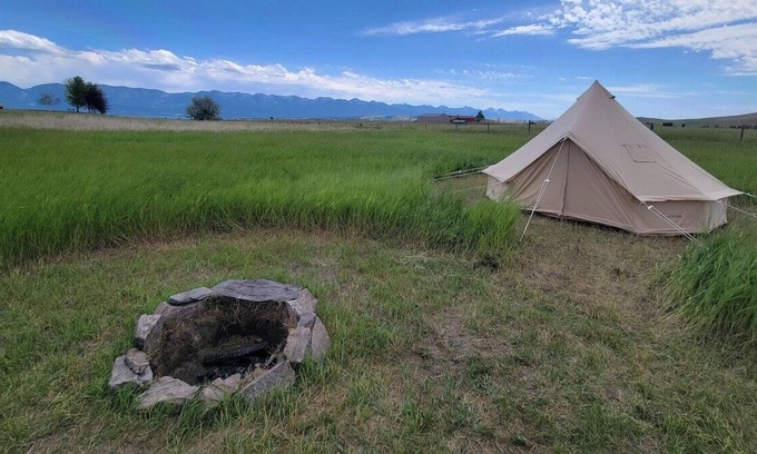 Nestled in the heart of the Mission Valley just moments from Flathead Lake and the Mission Mountains, this Canvas Bell Tent experience is one you’ll never forget. All-organic and pet friendly, this is perfect for a romantic getaway or a family fun adventure. We have the ideal setting for nature, yoga and meditation lovers. You can enjoy yoga, meditation, laughter and love under the old growth Weeping Willows sweeping over our historic bubbling artesian spring naturally feeding the pond, waterfall and stream, just steps away from your Canvas Bell Tent. The view from your Canvas Bell Tent is of the breathtaking Mission Mountains where the sunrise is to-die-for. Though there is WiFi available, there’s no need for technology; the night sky is a show of its own with unadulterated views of the Milky Way and occasional northern lights! Grounding on this magical land is truly a gift and something you're sure to never forget.