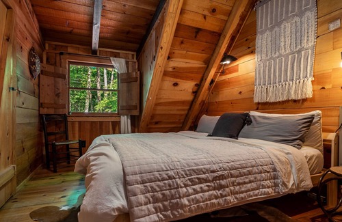 Hideaway and discover what outdoor adventure and the mountain air can do for your soul at The Hauschen Holler, a cozy, bucolic cabin conveniently located in the iconic Walnut Mountain community. After exploring the many nearby local wineries, floating the Cartecay or hiking the neighboring scenic trails of Appalachia and strolling the hip downtown Ellijay ~ just 6 miles away, return to this perfectly rustic cabin to picnic near Turniptown Creek, go for a hike on one of the many community trails, refresh in the mountainside pool, borrow some rackets and hit the tennis courts, or bring your fishing poles and fish at one of the four stocked community lakes. Better still, bring a book and just stay in, sip your coffee on the charming screened porch and enjoy the sound of the mountain breeze through the trees of the holler. Whether you are needing a solo reprieve or hitting the abundant hiking/biking mountain trails with a couple friends, The Hauschen Holler is the perfect setting to welcome you back!