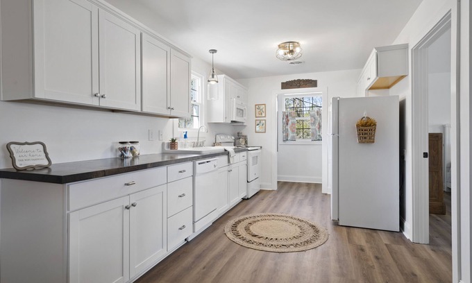 The Resting Ranch is a spacious home that gives you all the feels of privacy, but is close enough for easy access to Fountain Inn, Simpsonville, Greer, Greenville and Spartanburg. As you enter the home, you will be greeted with a large living and dining room that flows perfectly into the kitchen. The home has 2 smart tv's, kid friendly spaces, a large back deck and much more. Approximately 30 mins from downtown GVL & Spartanburg.
