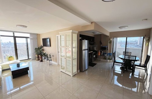 The space features two comfortable bedrooms with queen beds, a fully equipped kitchen, a cozy living area with smart TV, and fast Wi-Fi—perfect for relaxing after a day of exploring the city.