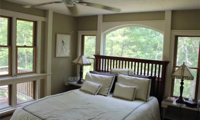 A mile to Monument Beach, this secluded home on 1.27 acres is at the end of a cul de sac. 3 master bedroom suites, laundry, Brazilian cherry, bamboo & tile flooring throughout, office and attached sun room. Large, new Anderson windows and many skylights give this home a lot of natural light and brings in the large private lot, creating a treehouse feel. The deck is multi tiered with a garden and access from the bedrooms. Home comes completely furnished. Happy to assist with any questions or concerns to make your stay a delight!