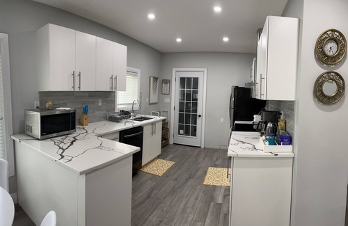 Enjoy the comfort of this bright contemporary upper unit of a Walkerville house. This newly renovated unit has an open concept living room & dining area, a fully equipped kitchen, a full washroom & 3 bedrooms (two have queen sized beds & one with a double sized bed). One foldable twin/single cot is available in the unit. All bedrooms have a workstation (desk & chair). High speed internet, 50”TV, private laundry, and street parking.