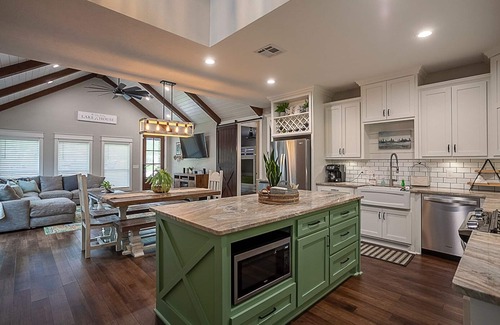 Welcome to our lake house in Rayburn County – your home away from home where comfort meets convenience! Within minutes you can find yourself at the golf course, country club, Umphrey Pavillion, or Twin dykes boat ramp. Step inside and kick back in our cozy open-plan living space, perfect for relaxing. In the kitchen, whip up your favorite meals with ease using the gas range , keep your dishes warm in the nifty warming drawer, and make sure your drinks stay cool with our built-in ice maker. Reach out for a first responder discount!