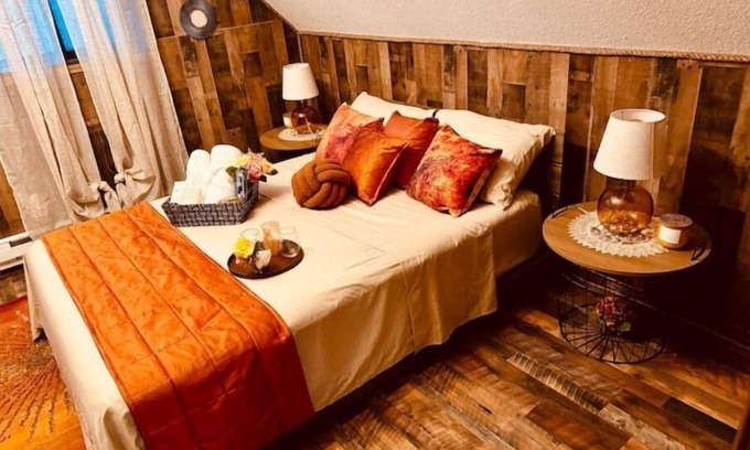 Cozy 3-bedroom house with two full bathrooms, with an indoor fireplace, and smart TVs in every room. On the main floor, you will see two bedrooms, one with three single bunks for kids, and the other with a queen-size bed. Living room with fireplace (pellets), A full-size kitchen with tons of gadgets to make cooking a breeze. Upstairs, you will find a loft to turn into a work or sleep area with a futon that can sleep 2, a bedroom with a queen-sized bed, and a walk-in closet. There is an extra full-size air mattress and a vacuum.
