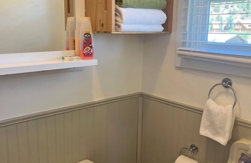 This studio vacation cabin rental at Aspen Ridge Cabins provides one queen size bed, a private bathroom with shower (no tub), smart TV (streaming TV service provided), fiber optic wi-fi, a full sized refrigerator, stove/oven and kitchen with basic supplies. Perfect for an individual or couple wanting an affordable basecamp for their outdoor activities. Accommodates two.