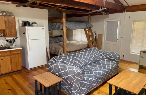 Stay in this CozyCabin with screened porch on a wooded lot, walking distance to Nolin Lake State Park.This cabin offers a full-sized kitchen and appliances, dining area, and living room space with a TV and Wifi. A king-size bunk bed comfortably accommodates 4 adults in addition to a full size futon in the living area.A full bath and ample storage are also features of this property.This is the perfect getaway for a friends weekend or a weekend with the entire family! Check out the Homey Hideaway or Rustic Retreat - discounts if rent more than one! Linens included with stay. Ask about military discount!