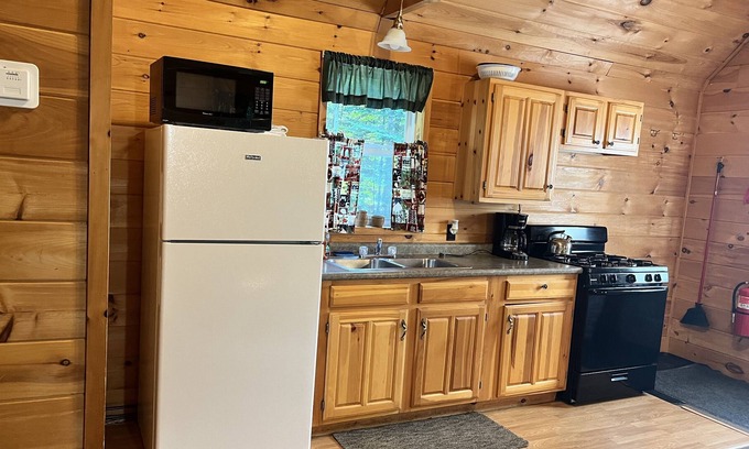 Cabins are nestled in the woods. picnic table and firepit for outdoor fun. across from Moxie Falls and nearby lakes. tranquil and cozy. cook in your own kitchen or go to Nearby restaurants and bars. ATV and Snowmobile trails on propery!!property. hiking, exploring rafting snd tubing nearby