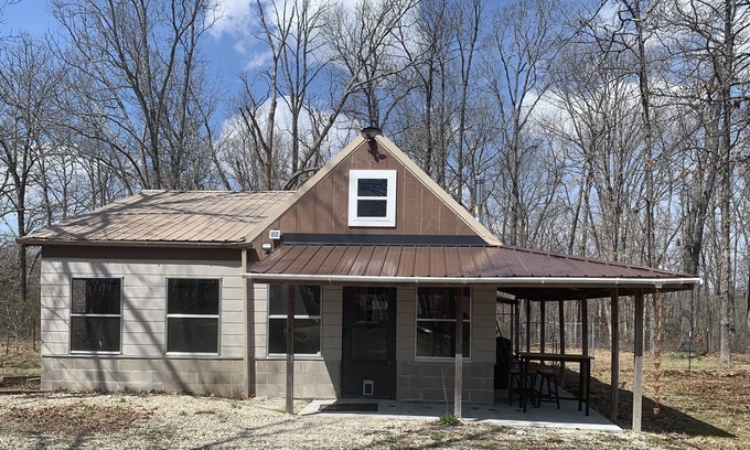 Quiet, cozy, one bedroom cabin on 30 acres with walking trails, pond and close to town. Sit around the firepit at night while overlooking the pond. Close to several wineries and 20 minutes to Meramec Spring Park.