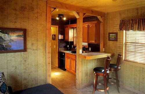 Our Cabins are a prefect weekend retreat or long term winter vacation home. With a warm, homey feeling that isn't easily found in other cabins, the studio floor plan and special features insure that you have the most enjoyable relaxing vacation. The rustic exterior Cedar Siding is housing an interior of ceramic tile & rustic walls, with top of the line electronics, and appliances. If you look for that special, and romantic place, look no further, our Classic Cabins have it all!