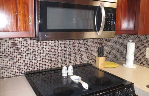 -The kitchen is fully equipped with a stove, microwave, dishwasher, refrigerator, toaster, blender, coffee maker, kettle and crock pot.