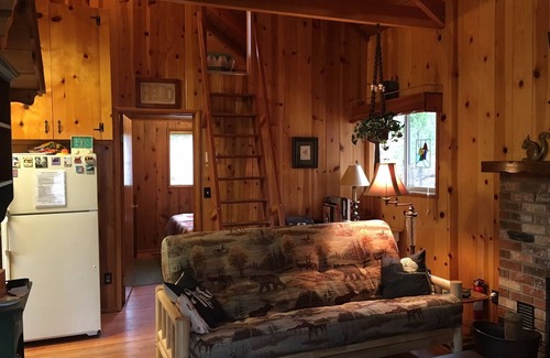 You've found your cozy, quiet cabin getaway! This cabin is oozing with woodsy charm....a warm fireplace and everything you will need to enjoy a short visit or a long stay. The well equipped kitchen has everything you will need to cook up a feast if you so desire. 1 bedroom on main level with queen bed, a loft that has 2 twins, a double size futon in the living room and one bath. The town of Idyllwild offers many restaurant and entertainment options as well as opportunities to experience nature with many hiking trails etc.