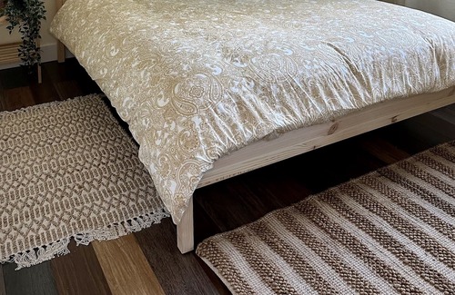 Three bedrooms (king, queen, double) and two full bathrooms.