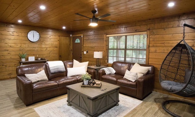 A luxurious retreat without having to go too far. Located halfway between Dallas and Texarkana, this completely updated cabin surrounded by trees is a relaxing getaway only minutes from Lake Cypress Springs and Lake Bob Sandlin. Lots of privacy on over 2 acres with all the comforts of home. It's a short drive into town for groceries, shopping, dining and more. During the day, take a stroll through our private walking trail. At night, enjoy a nice cookout in a spacious screened patio or make s’mores over a fire pit.