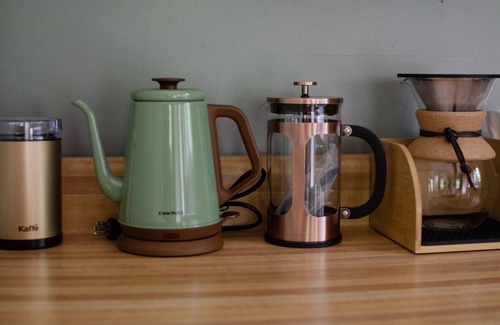 - Coffee nook with electric kettle, French press, and pour-over. Please BYOB (bring your own beans)