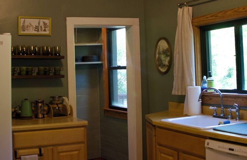 The cozy creek-side cabin is simple, relaxing, and nostalgic, yet modernized and comfortable.