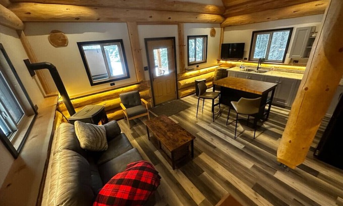 This cozy log cabin is the perfect base for your outdoor activities or a private getaway. At the heart of 6 national parks, its easy to enjoy all that Golden offers with endless bike trails, hiking, paddle boarding, skiing/snowboarding, sledding and more.