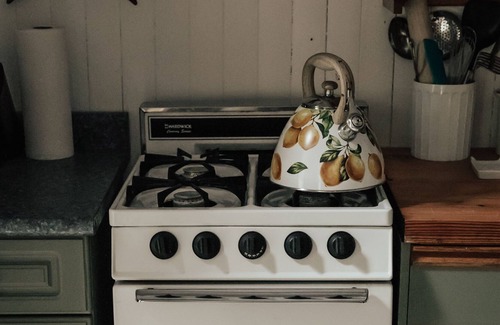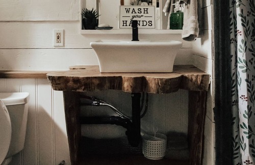 The Shack is a cozy 1 bedroom, queen size bed, with a walk in dressing room, 1 bathroom with shower, 1 double hide a bed in the living room. Offers off grid-ish living with a full kitchenette that includes a small 1950's vintage propane stove for cooking, hot water on demand, and woodstove to warm up by on the colder days.