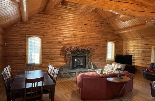 This is my personal home that I live in but travel frequently that I am opening up this winter for guests when I am gone. It is a very nice cabin with old school wood charm. It does need higher end remodeling however everything is in good condition and works well. Has 4 bedrooms and a loft above the mini authentic cowboy bar. Master has own shower and bath. The other bedrooms share a tub shower. The loft has a sink and toilet. There are 2 gas fireplaces to make even more cozy on a cold snowy winter night. 2 living spaces. There is an outdoor hot tub as well. Please be respectful of my home if you decide to rent it. Thank you.
