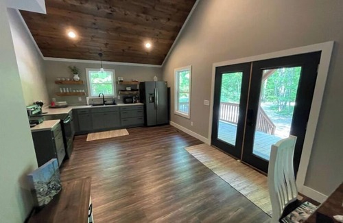 The cabin has all of the amenities that you will need for a weekend or week. It has a full kitchen with a stove, oven, and full refrigerator, and of course a fully stocked Keurig. The den has a large LED TV with all your streaming apps available via a Roku (instructions are provided). On the first floor is a master bedroom with a full bathroom. Upstairs is a loft that includes a double bed and two single beds. There are two full decks (one in front and one in back). In the back is also a fire pit with firewood already cut for you and dried. There is also outside security cameras on the front and back porches to monitor the doors.