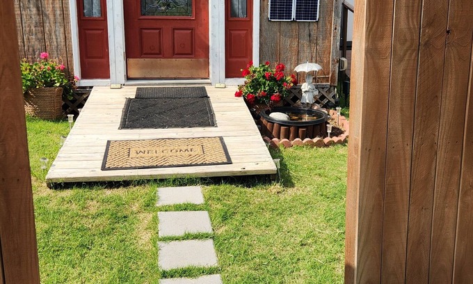 This memorable bunkhouse is the perfect home base for your trip to the Tulsa area. Nestled in the pastures of serene Coweta, this country property offers a cozy retreat for guests. Featuring a comfortable queen bed with an extra cabin for larger groups, and ensuring a phenomenal night's sleep for up to five. With amenities like WiFi, heating, AC, kitchenette, a heated outdoor shower and a fishing pond, your stay will be nothing short of perfect. The detached, plumbed bathroom is equipped with a hot shower and a hair dryer. Experience what Coweta has to offer with a stay at our charming cabin.