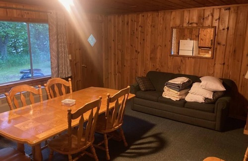 Located on 2nd crow wing lake , this cabin is a dream. With a cozy bedroom, WiFi, AC, and heating, guests can unwind in comfort. The cabin also offers coin laundry for convenience. Kickback, relax, and enjoy everything the lake and our cabin has to offer.