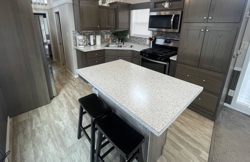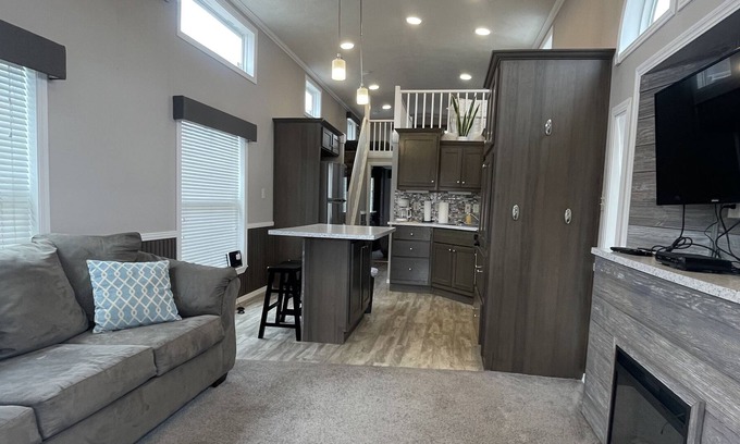 Perfectly sized tiny home cabin in a great resort with many amenities! The resort has a seasonal outdoor pool, coin operated laundry machines, extra showers and bathrooms, play ground, and recreation room with many games and a mini library! The resort also has a mini store with some food/candy, soda, beer, ice and firewood. Right down from the resort is a public boat ramp that is 5 Dollars a day to use, along with the many restaurants and new golf courses on the island! Also with the famous newly rebuilt Shangri-La resort down the road! There is definitely no limit to finding activities on the island!