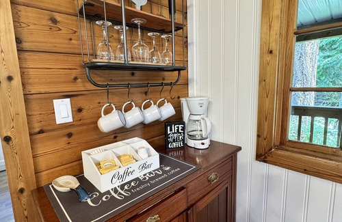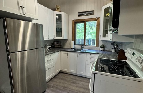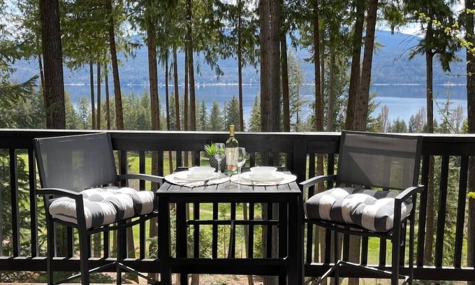 Stay and Play - With every stay you will enjoy a complimentary round of golf at the North Shuswap Golf Course. Bring the whole family to this great place with a view that won't stop. Cute Retro Cabin with some modern updates. Kitchen is fully stocked with everything you could need. The views from the hot tub and balcony are breathtaking. You will be able to watch golfers, boaters, and wildlife while you enjoy your time on the deck. (it a private deck)