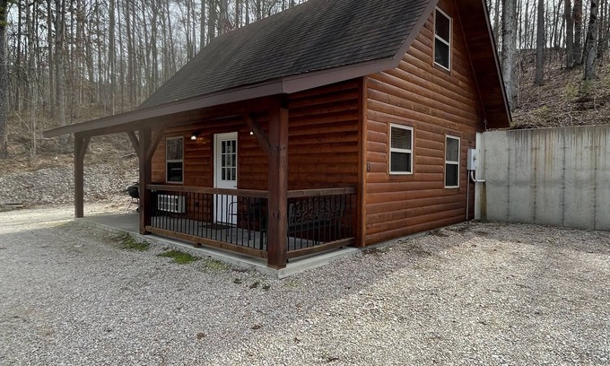 Conveniently located 2 bedroom 1 bath Cabin sitting on the edge of town just 1/2 mile from the water! Everything you might need for a weekend or weeks stay. This Cabin is perfect for you. Tucked off of highway 60 you right across the road from town. Grocery stores, gas stations, restaurants, and public water access are just out the door. Do not let the convenience of town take over. This cozy cabin is nestled on a hillside full of beautiful oaks, hickory, and pine trees. Enjoy the views and accessibility with us!