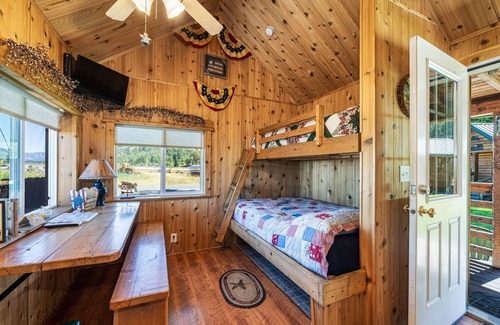 Grandma Jo's cabin features 2 bunk sleeping arrangements with a double-bed below and a twin above. There is a small loft with two single futon cushions as well. Bathroom has a shower and toilet. All basic cookware and utensils are provided along with a coffee maker *Note: we don't provide the coffee. Locally roasted coffee available at Tony's market and Morning Bear Coffee. This little cabin packs a lot of value in for travelers who primarily just want the basics. Clean and cozy, ready for your visit!