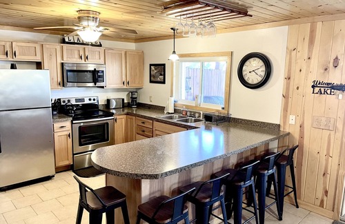 This cozy lakefront, ground level duplex cabin is close to everything, making it easy to plan your visit. Access to a private dock and hot tub in a private, semi-wooded setting with firepit and plenty of outdoor space but only a few minutes to Wisp Resort, shopping, restaurants and DCL attractions!