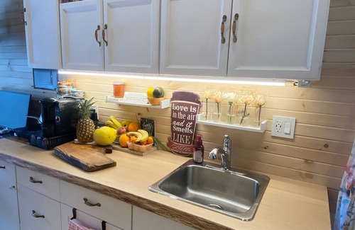 Cabin is also facilitated with a fridge, freezer, toaster over/air fryer, induction burner, a kettle, coffee press and use of the BBQ.