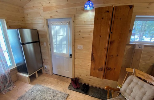 A quaint quiet space away from everything. Extensive amenities & activities available 'if you choose'. Enjoy your own cozy 300 square feet Cabin/Cottage, with tiny home convenient amenities. Queen bed sleeping area, vaulted ceiling, cupboards, clothes hanging racks, self contained bathroom with cedar shelving & shower facilities, towels and bedding provided.