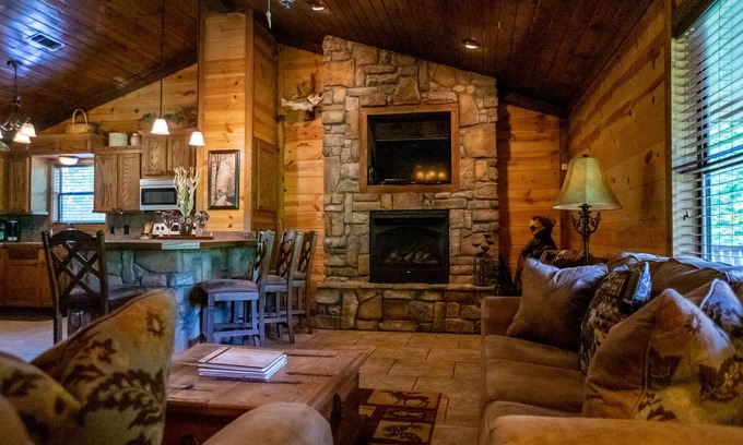 Hillside Hideaway is one of five cabins on a 35-acre gated community with exclusive access to Legacy Trails Landing on Mountain Fork River.