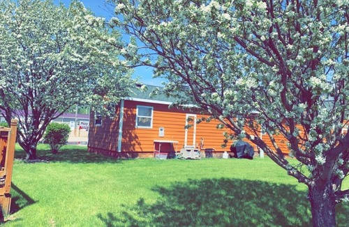 Cabin 4 includes two full sized beds. You also have access to a kitchenette with a mini fridge/freezer, microwave, sink and coffee pot. Enjoy time in the backyard where you can clean fish, grill, or just relax! The bathroom includes a shower with towels and wash clothes. Head to local West Lake where you can swim, fish, or boat or enjoy our city park and pool. Grab a coffee and a pastry at Mabel’s Bakery or enjoy an ice cream treat, food or a drink at The White Maid Restaurant and Bar!