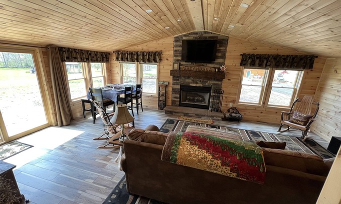 This home has all upscale finishes, but with the cozy cabin Adirondack feel. All the living space is on one floor and very spacious. Perfect spot for your Adirondack adventures.